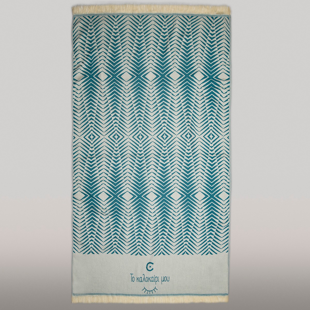 Beach towel 100% cotton, with special antichlorine protection, 260gsm weight, embroider design and the favorite brand “Το καλοκαίρι μου”.